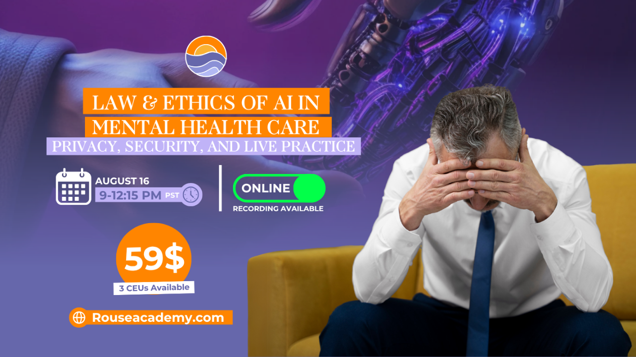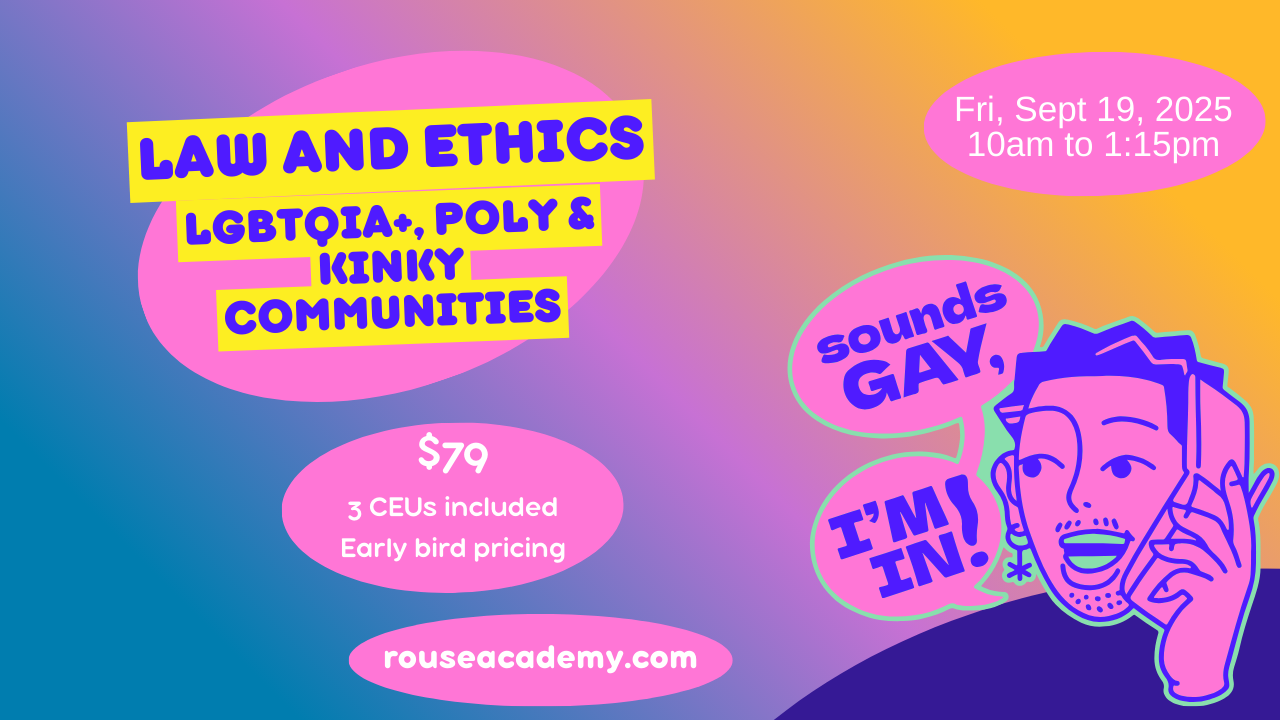 From artificial intelligence in mental healthcare, to protections for your LGBTQIA+, Kinky and Poly Communities, gain Law and Ethics CEs for California LMFTs, LCSW, LPPCs, and LEPs, while staying awake!